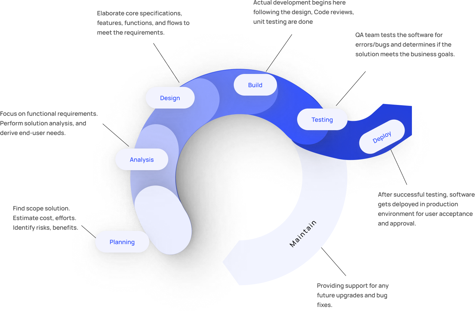 Delivering flexible applications that are secure, and compatible with legacy systems while maintaining the scalability, data integrity, and better performance of our custom-built solutions, which are guaranteed to meet business objectives.